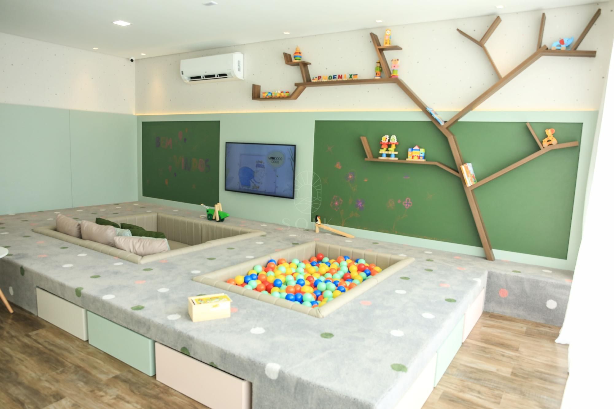 O edifício conta com área de lazer composta por piscina, bar molhado, spa, sauna, sala de massagem, academia, cinema, salão de festas, espaço gourmet, playground, brinquedoteca e quadra poliesportiva. As áreas comuns são distribuídas para atender diferentes perfis de uso e convivência.