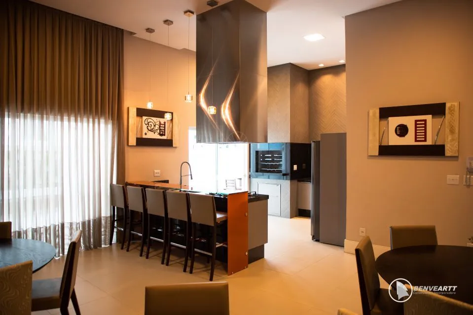 Os apartamentos oferecem 134,24 m² de área privativa e 312 m² de área total, com uma planta inteligente e ambientes amplos. São 3 suítes, living integrado com sala de estar, sala de jantar e cozinha com churrasqueira a carvão, além de lavabo, área de serviço e 3 vagas de garagem.