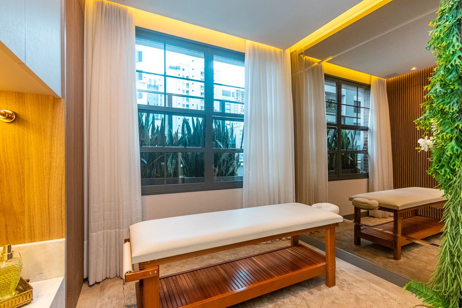 A estrutura de lazer ultrapassa 1.000 m² e foi planejada para atender diferentes momentos do cotidiano. O condomínio conta com piscina com raia semiolímpica, piscina adulto e infantil, espelho d’água, espaço fitness, English pub, espaço kids, playground, sala de massagem, sala de descanso, spa com hidromassagem, sauna úmida, street ball, espaço grill e salão de festas.