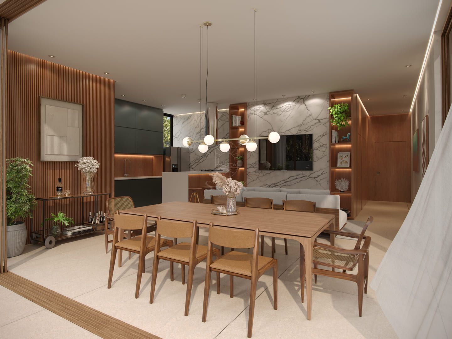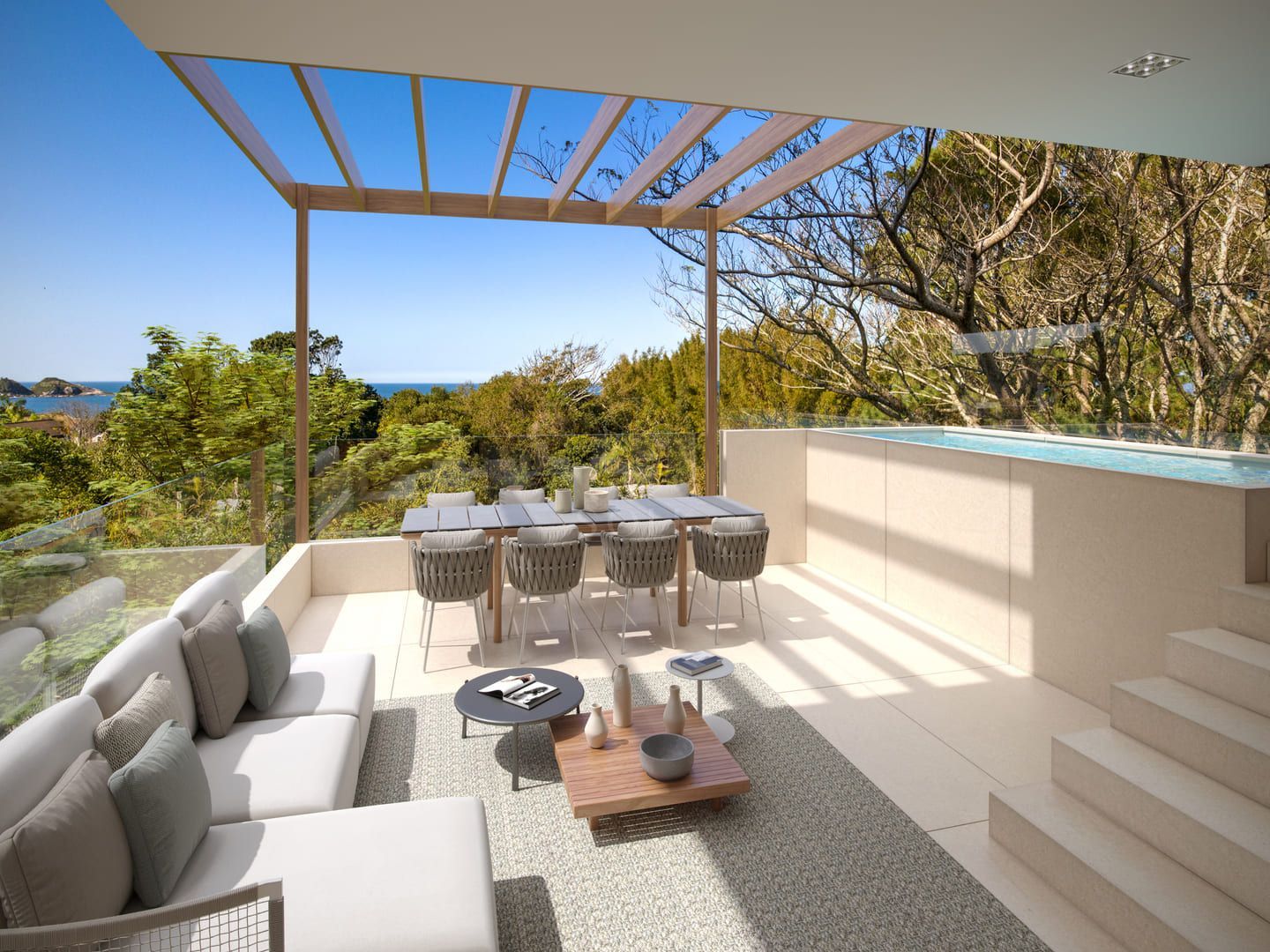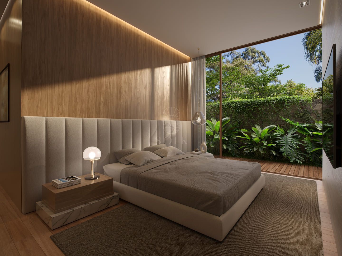 Sua arquitetura adota linhas puras e materiais naturais que dialogam com a mata e o mar. Cada terraza conta com piscina aquecida exclusiva, e as unidades superiores oferecem rooftops privativos. O empreendimento inclui garagem com três vagas e box privativo, além de pontos para abastecimento de carros elétricos.