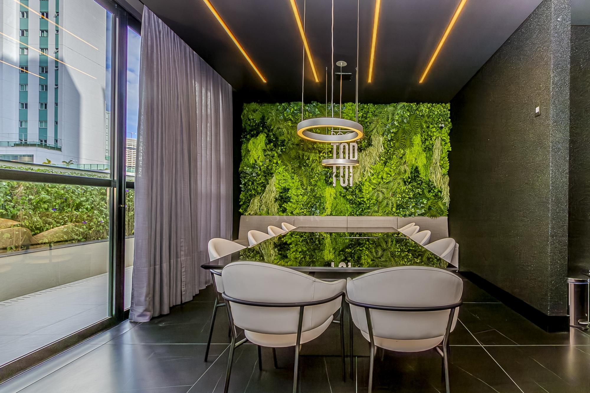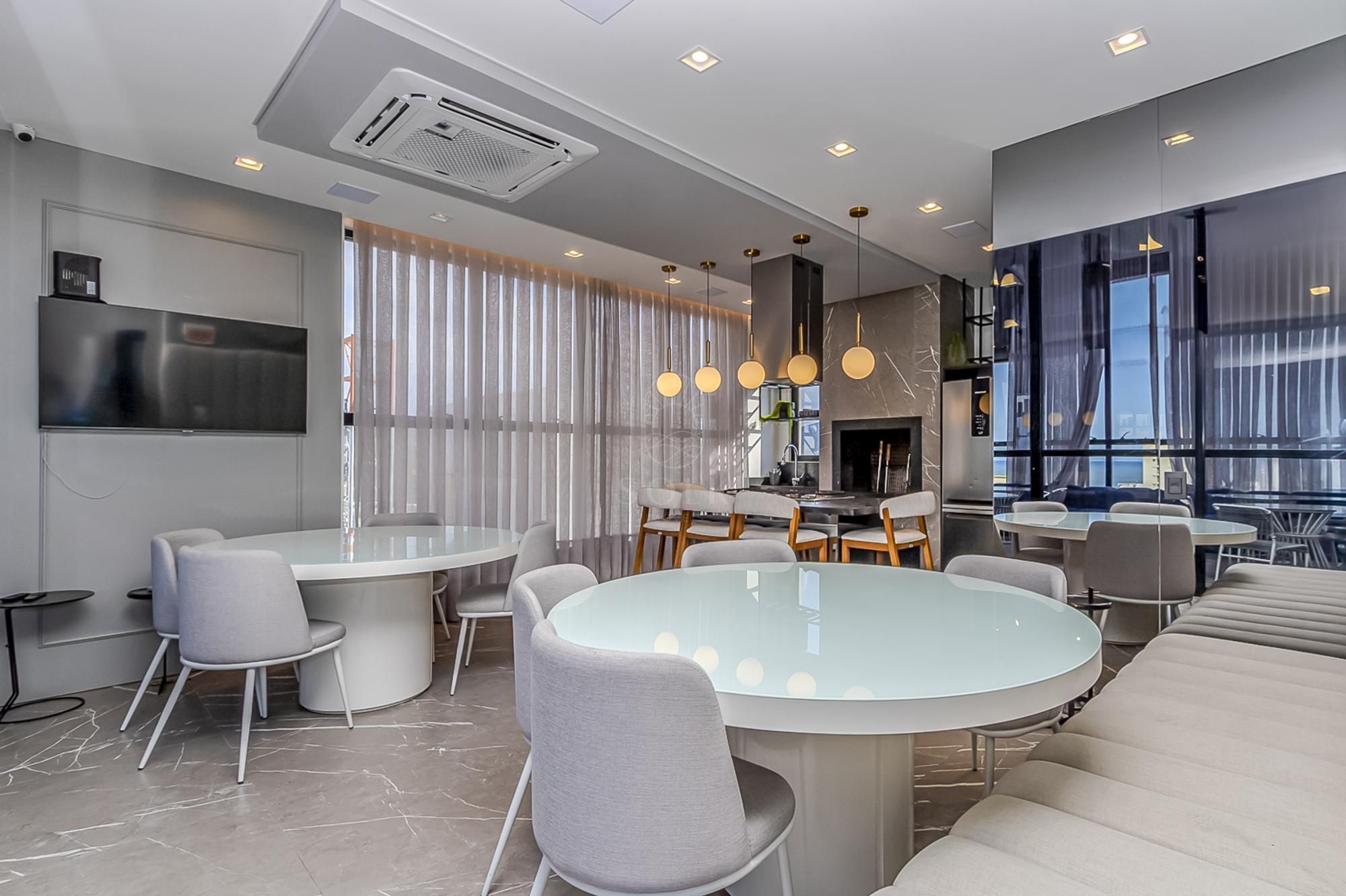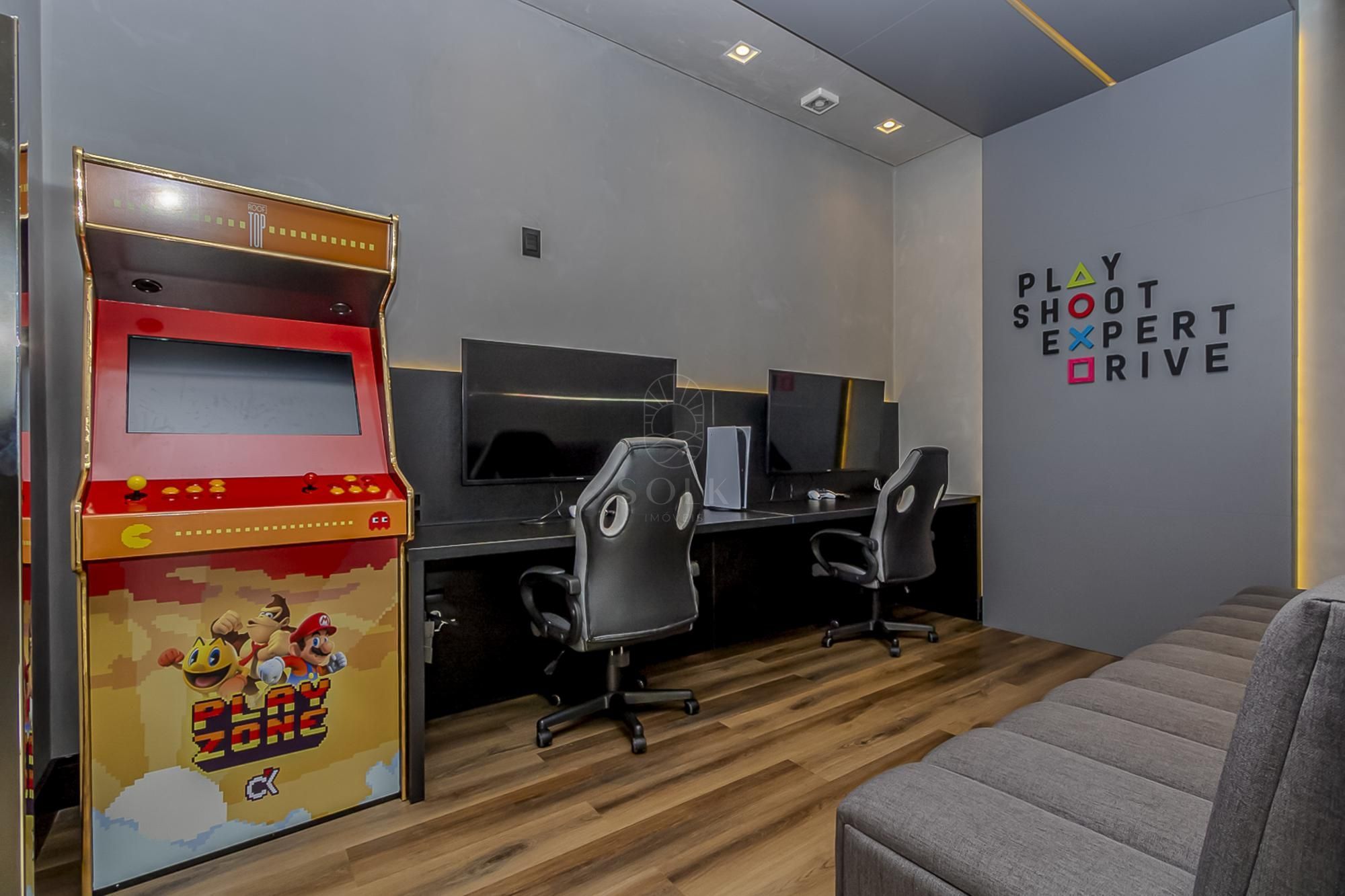 A área de lazer é distribuída em pontos estratégicos da torre, com destaque para o rooftop e ambientes voltados ao bem-estar. Piscina com borda infinita, spa com hidromassagem, sauna, academia e espaços de convivência compõem o conjunto, complementado por salão de festas, sala de jogos, brinquedoteca e áreas externas com lounge e convivência.