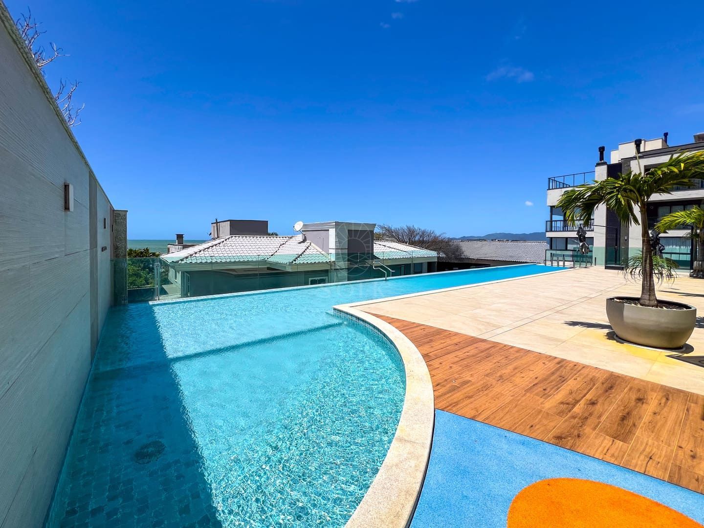 O Edifício Palm Beach incorpora o conceito de resort urbano, com infraestrutura de lazer completa: piscina com borda infinita, splash kids, quadra poliesportiva, poker room, brinquedoteca, salões de festas, sports bar e lounge à beira da piscina