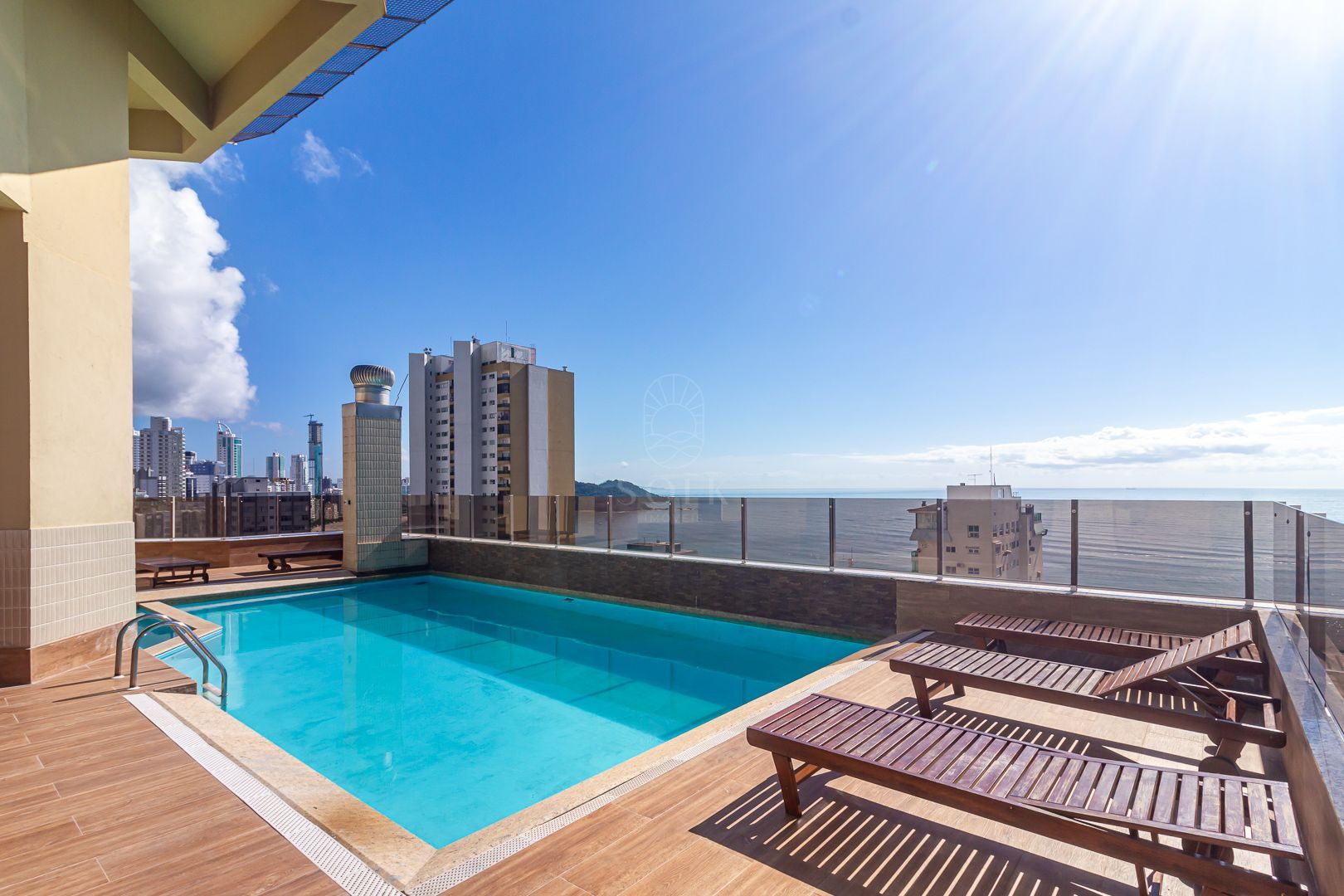 A área de lazer foi posicionada no rooftop, reunindo piscina com vista panorâmica, hidromassagem, espaço zen e solarium. O conjunto é complementado por academia, salão de festas, salão de jogos, cinema e playground, criando ambientes voltados tanto ao convívio social quanto ao bem-estar.
