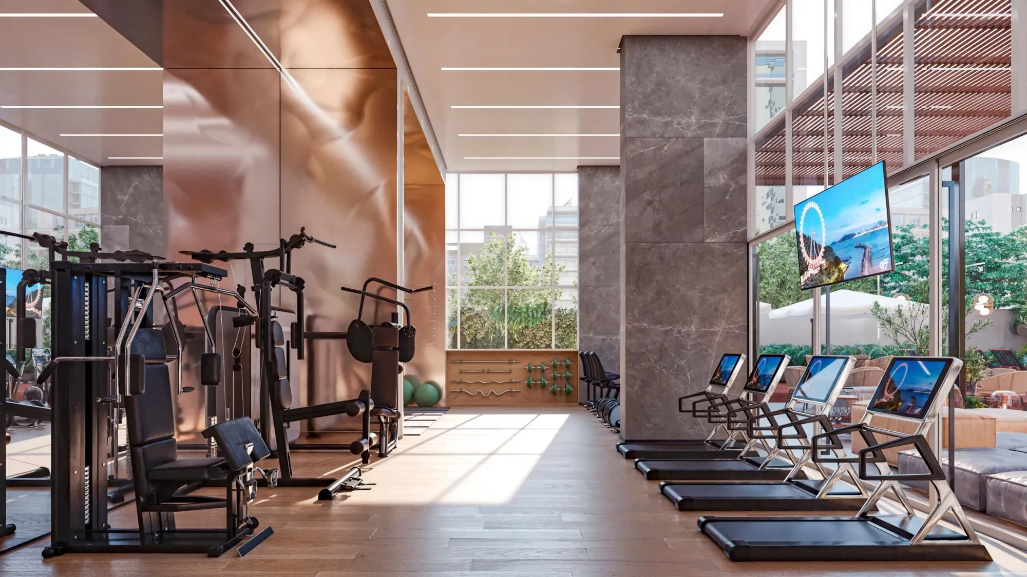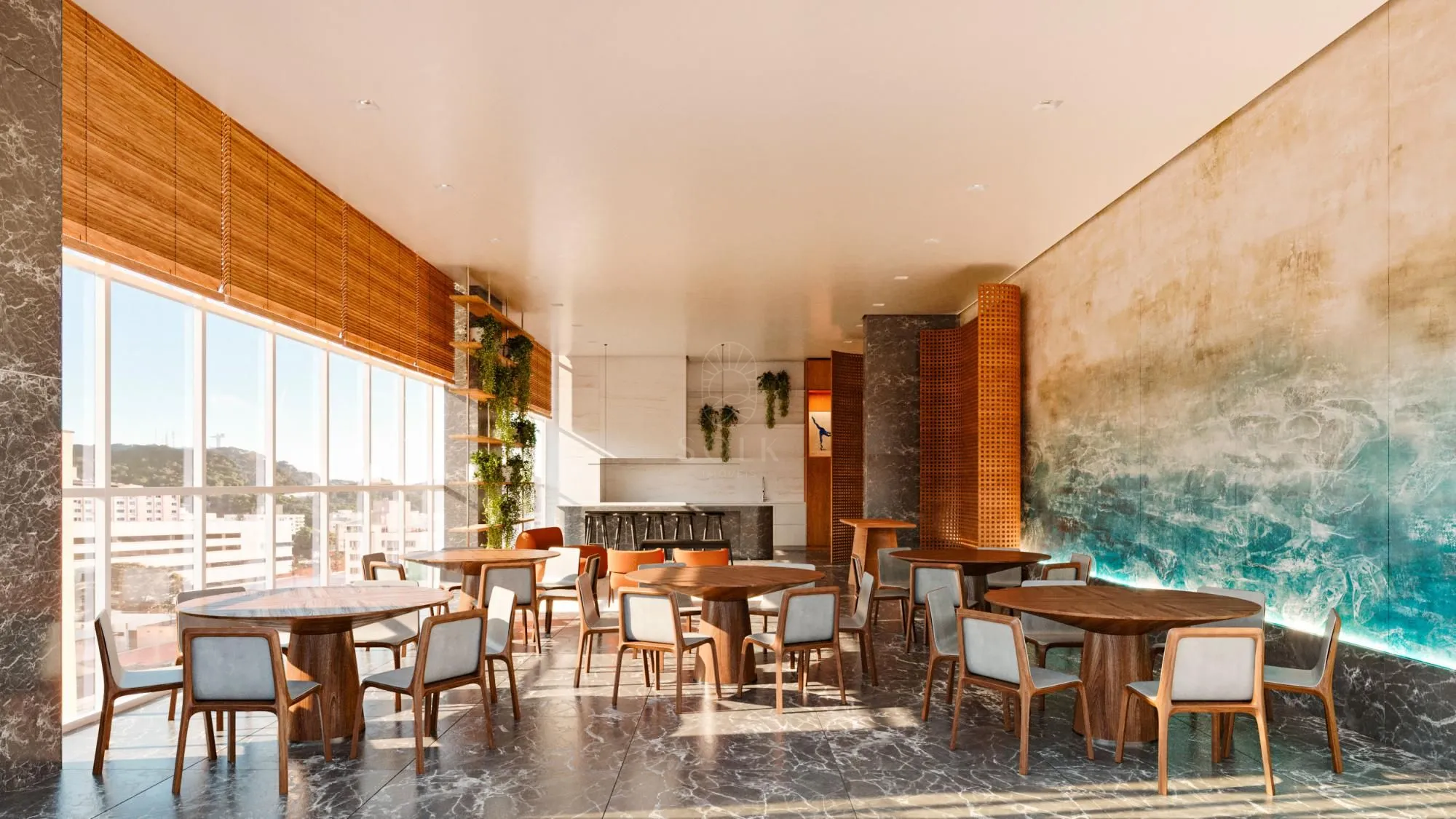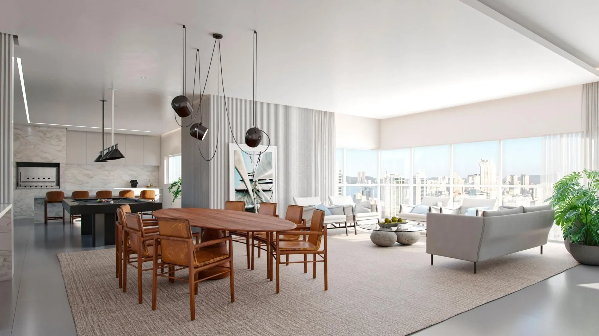 O empreendimento conta com piscinas adulto e infantil, piscina térmica e bar molhado, criando uma área externa voltada ao relaxamento e ao convívio social, além de sauna e espaço zen, que reforçam a proposta de bem-estar.