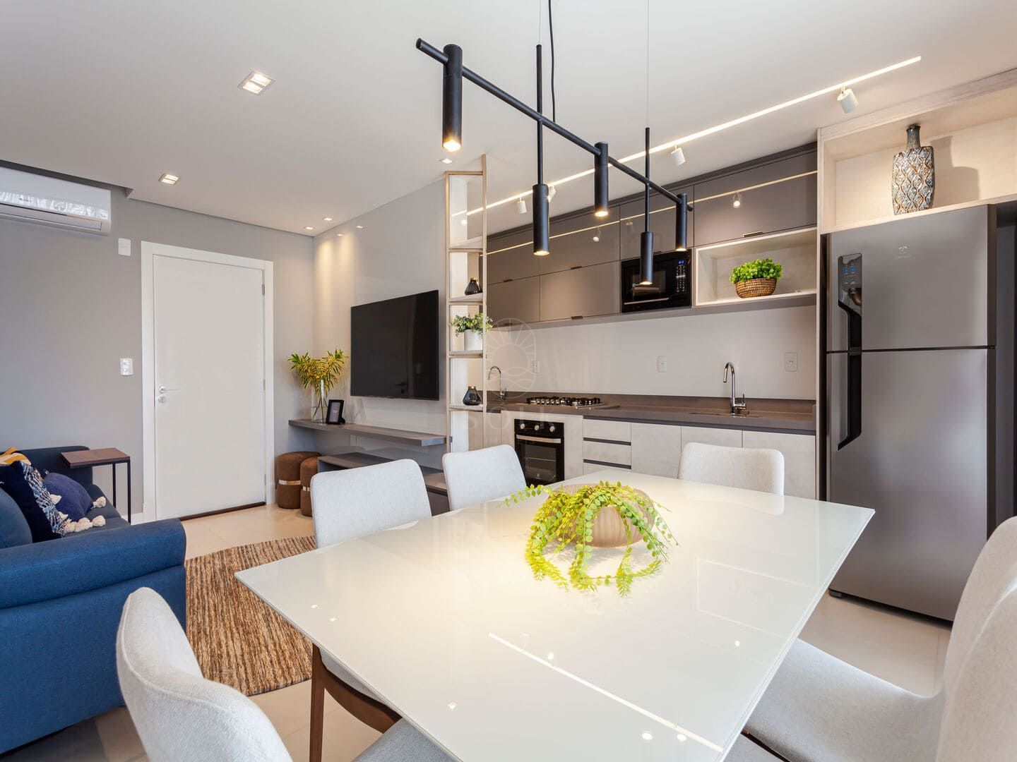 No Edifício Camboriú Boulevard, o apartamento de 96m² privativos apresenta uma configuração pensada para quem busca funcionalidade, integração e um cotidiano bem estruturado. A planta privilegia a circulação fluida entre os ambientes, com living, cozinha integrada e sala de jantar formando um conjunto coerente, prático e moderno. A sacada com churrasqueira amplia as possibilidades de convivência, tornando o espaço versátil para reuniões descontraídas ou momentos de pausa. A suíte, somada aos dois dormitórios adicionais, entrega conforto equilibrado entre privacidade e uso cotidiano, enquanto o banheiro social e a área de serviço completam o layout com eficiência.