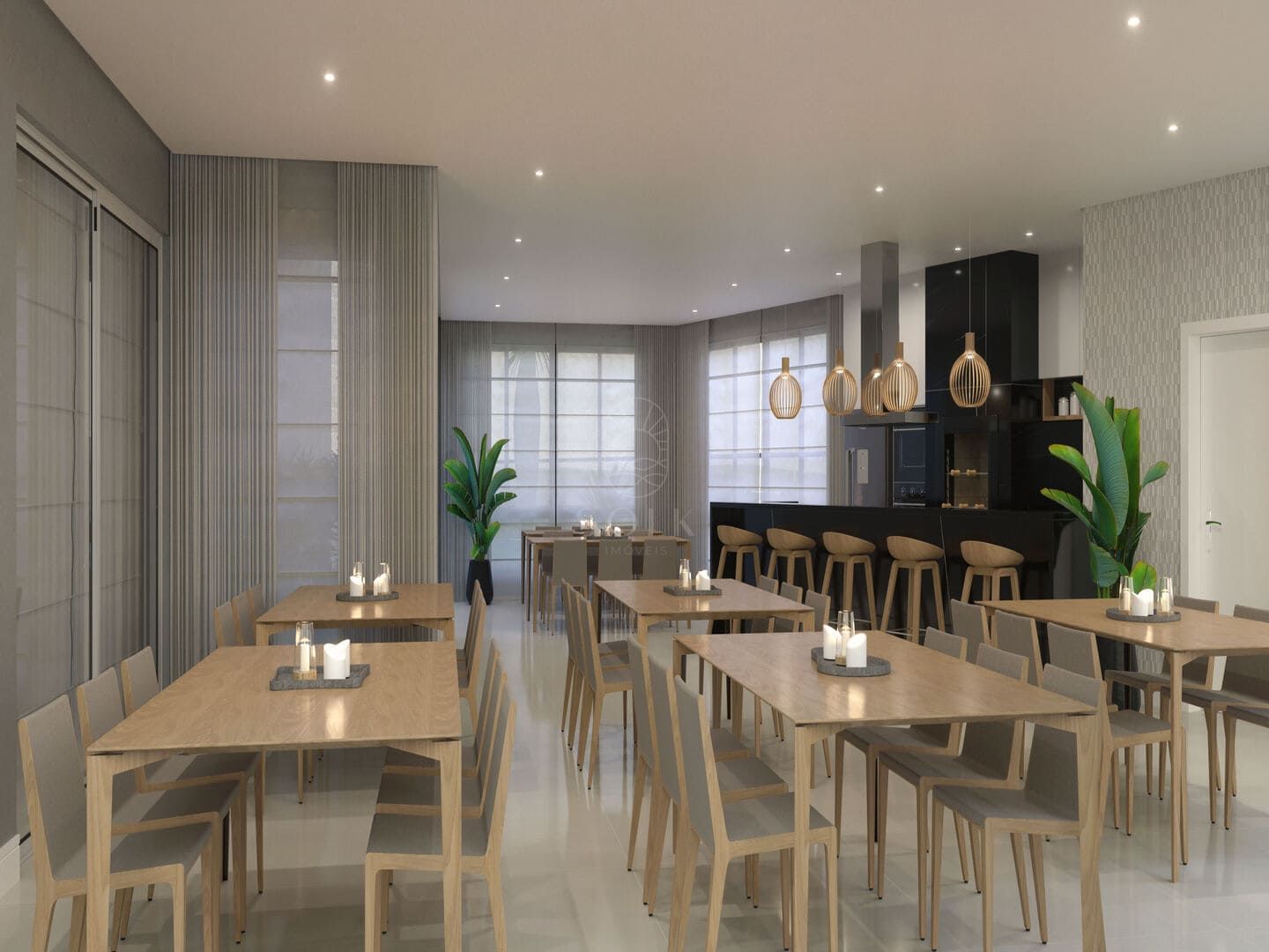 Na área de lazer, o condomínio reúne espaços que atendem diferentes rotinas. Piscina, piscina infantil e bar molhado formam um núcleo de relaxamento. Playground, brinquedoteca e salão de jogos ampliam experiências para famílias. Para quem busca bem-estar, sauna, spa e academia criam um circuito completo. Já o cinema, salão de festas, espaço gourmet, estética e a praça de fogo adicionam possibilidades sociais e momentos de desaceleração. A presença de uma piscina rooftop e um hall de entrada bem resolvido reforçam a proposta de entregar estrutura com personalidade.