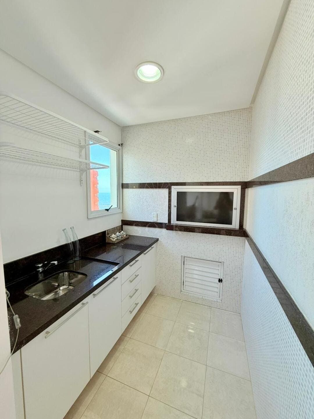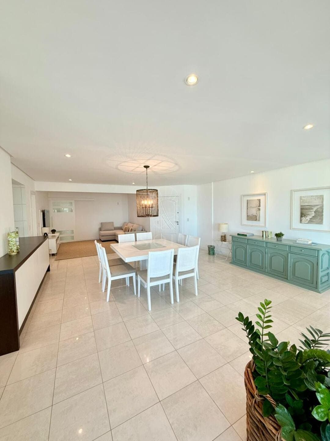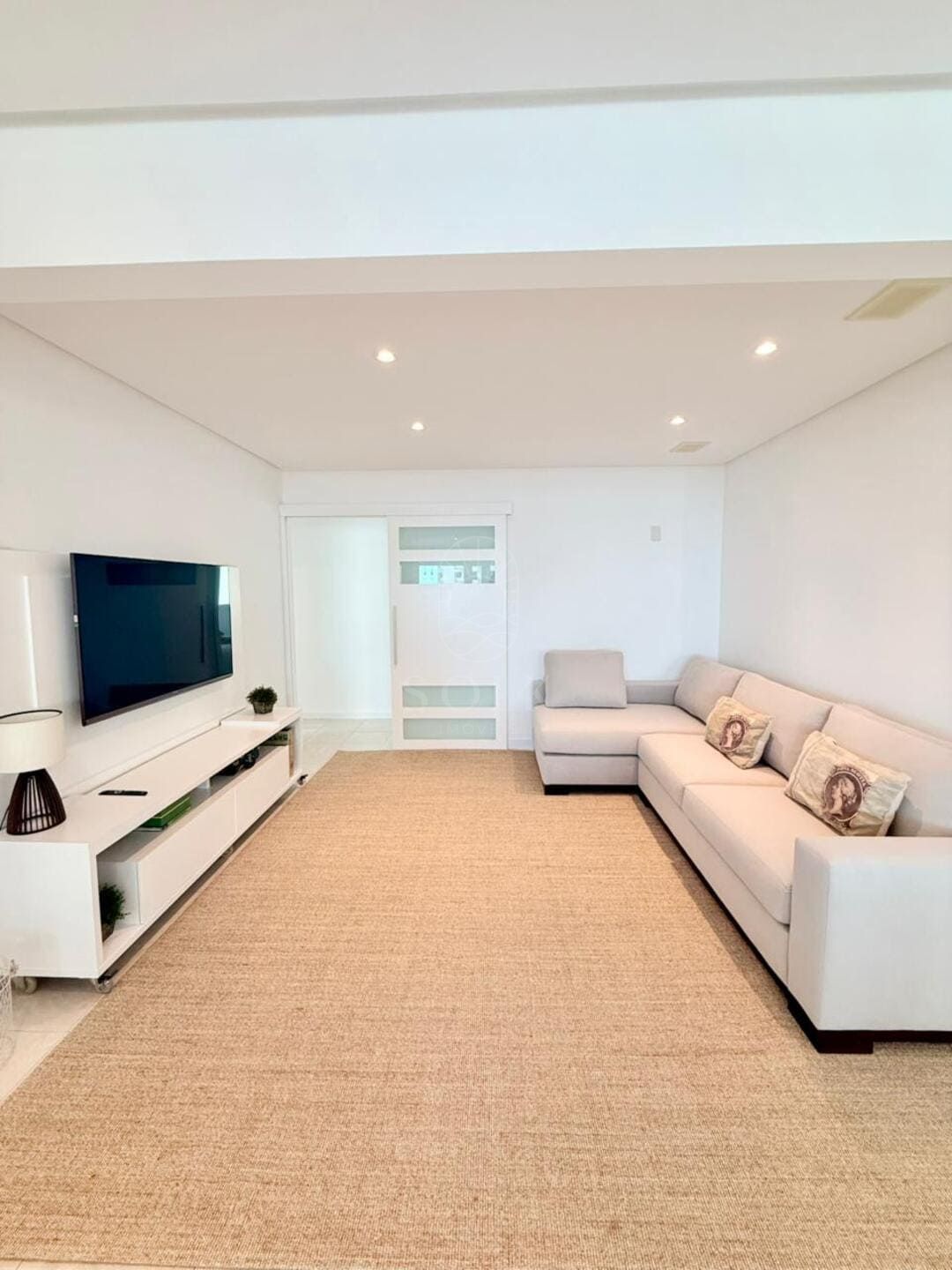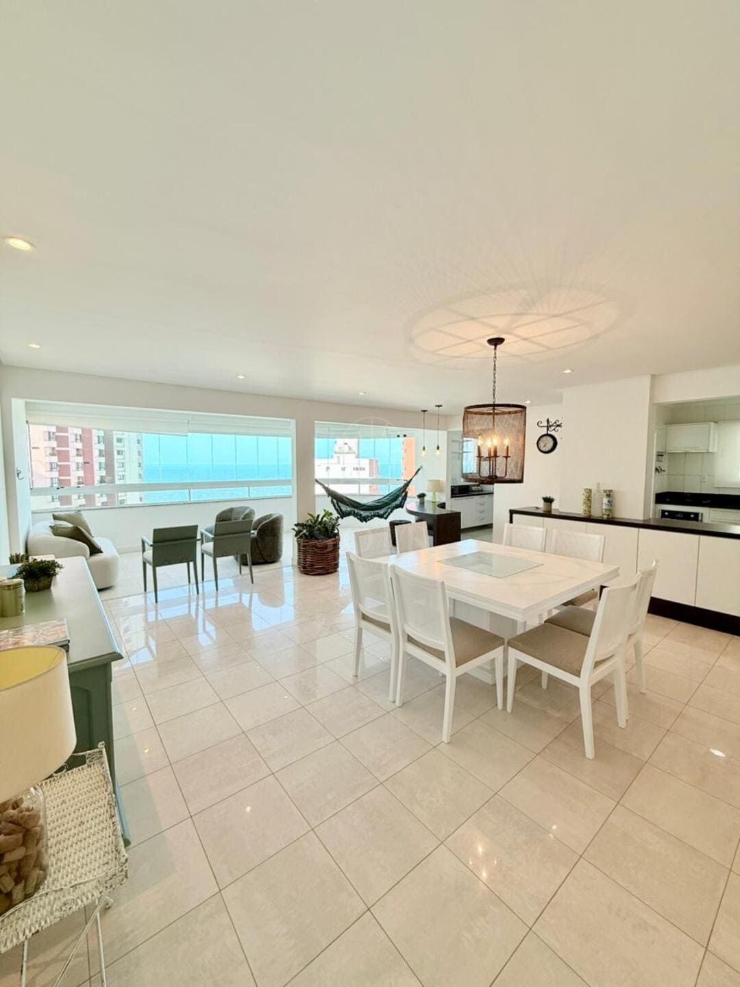A vista para o mar surge como pano de fundo constante, trazendo leveza visual e ampliando a percepção espacial do apartamento. O imóvel é semi mobiliado, com marcenaria e elementos já definidos que reduzem o tempo entre a compra e a ocupação, sem limitar futuras escolhas. O lavabo complementa a área social com discrição e utilidade, enquanto as três vagas de garagem reforçam a praticidade para quem vive ou recebe com frequência.