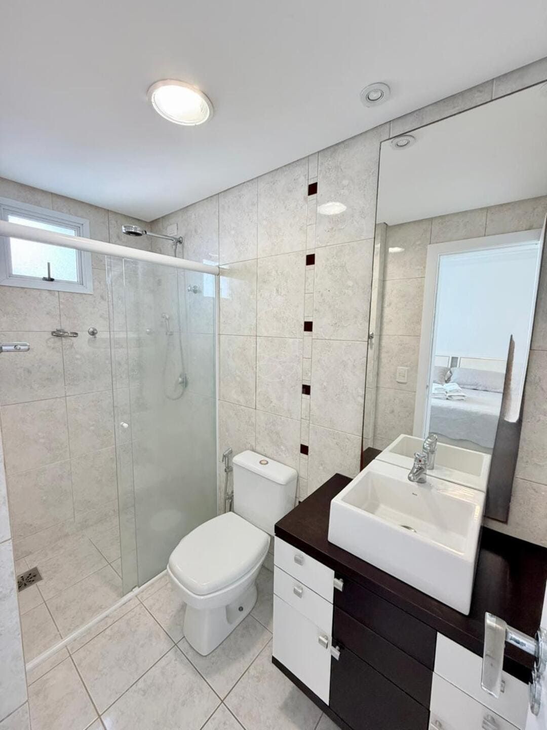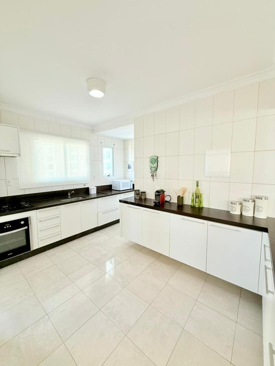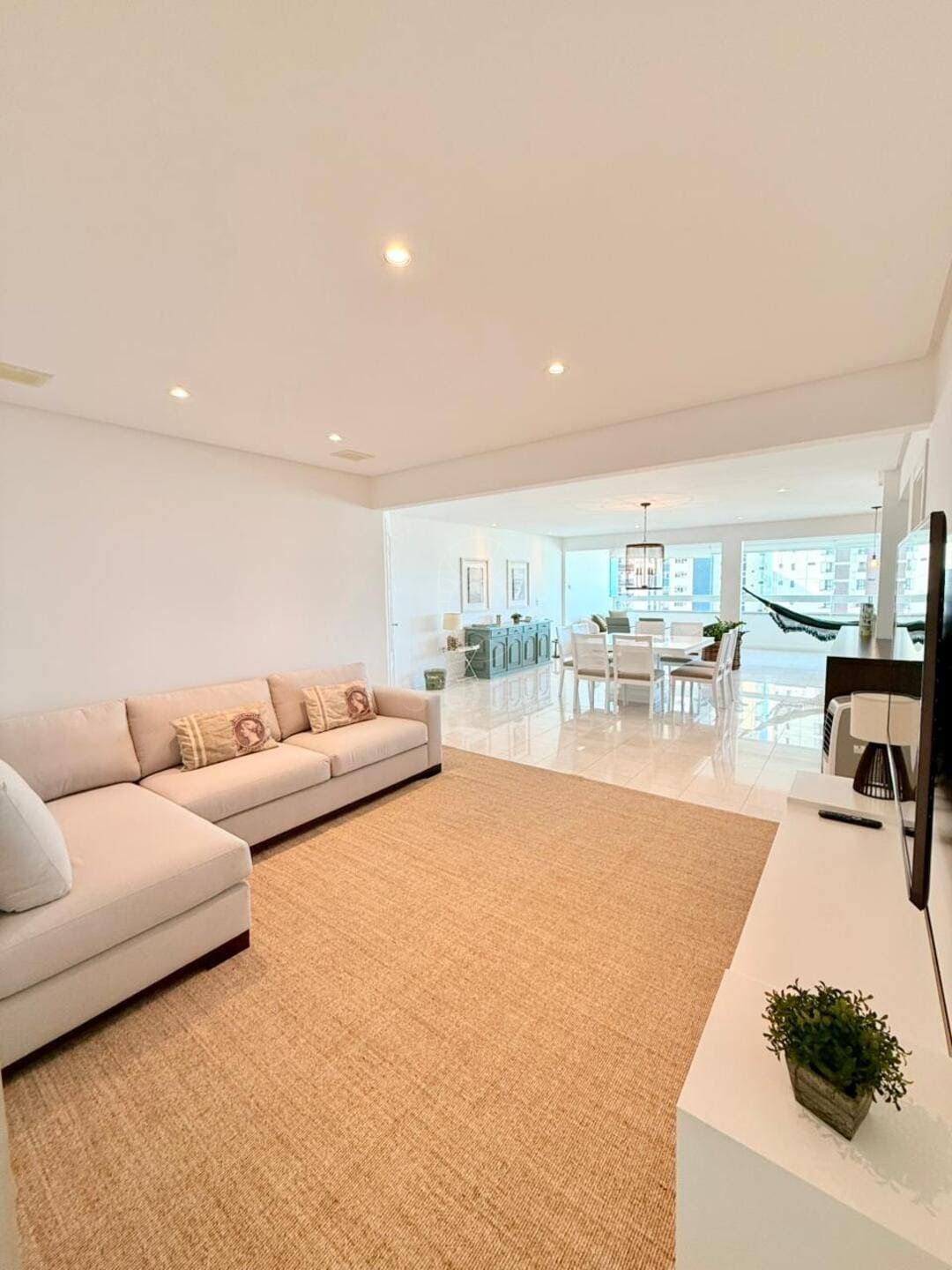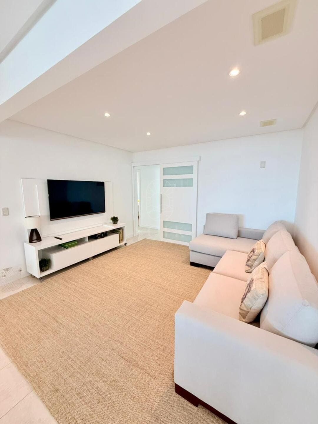 A vista para o mar surge como pano de fundo constante, trazendo leveza visual e ampliando a percepção espacial do apartamento. O imóvel é semi mobiliado, com marcenaria e elementos já definidos que reduzem o tempo entre a compra e a ocupação, sem limitar futuras escolhas. O lavabo complementa a área social com discrição e utilidade, enquanto as três vagas de garagem reforçam a praticidade para quem vive ou recebe com frequência.