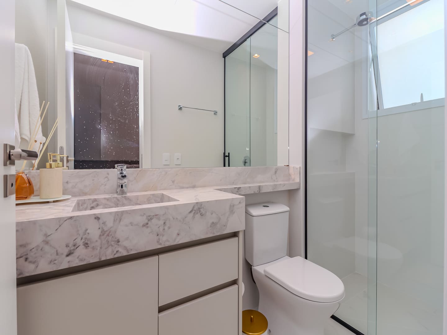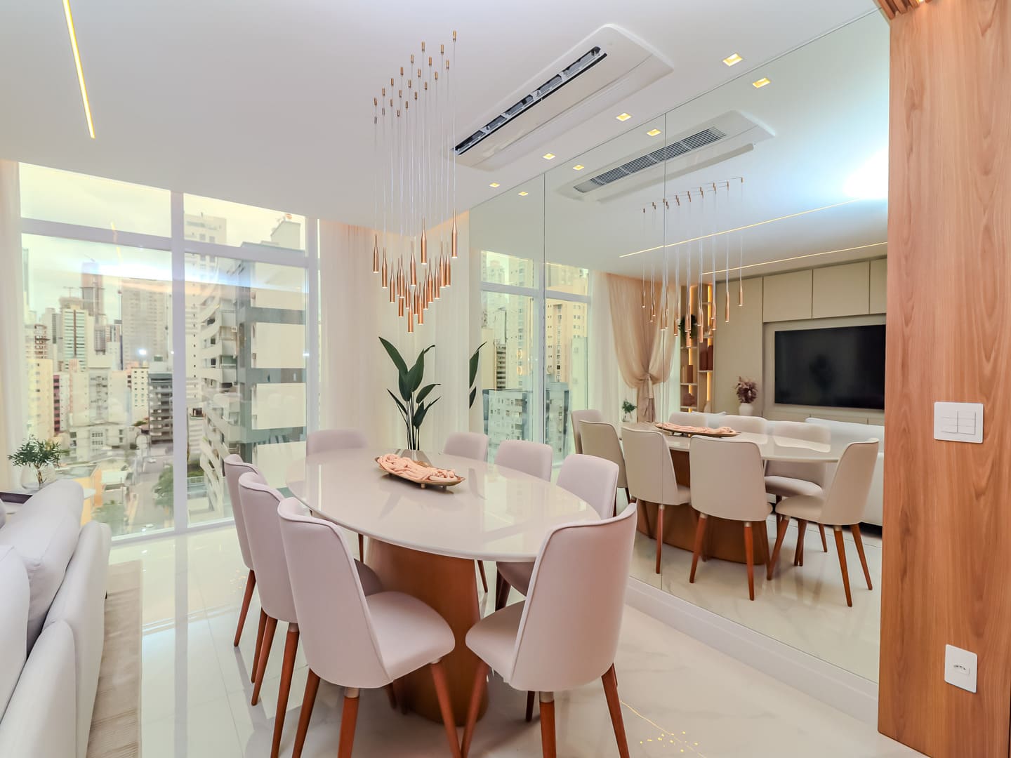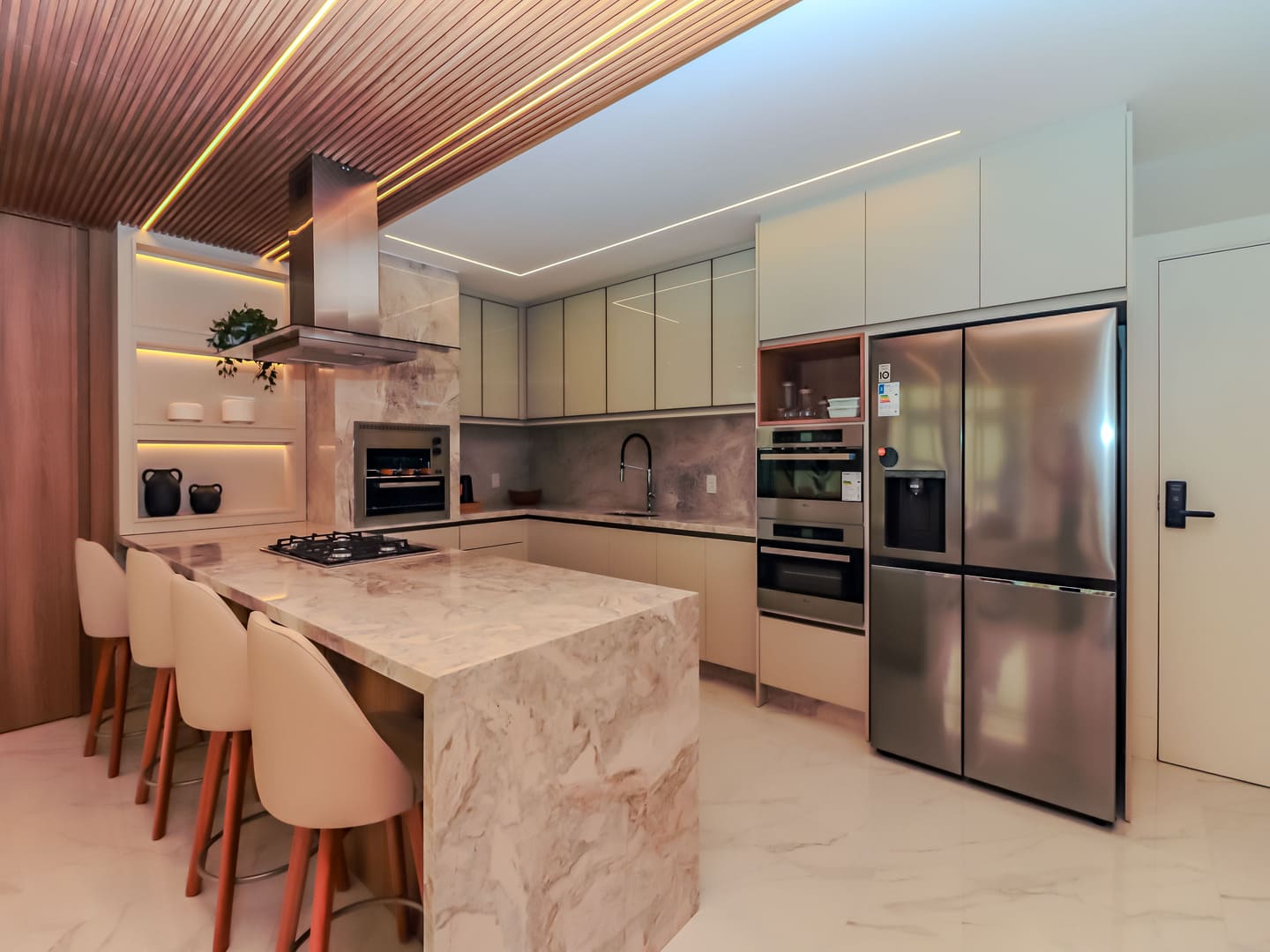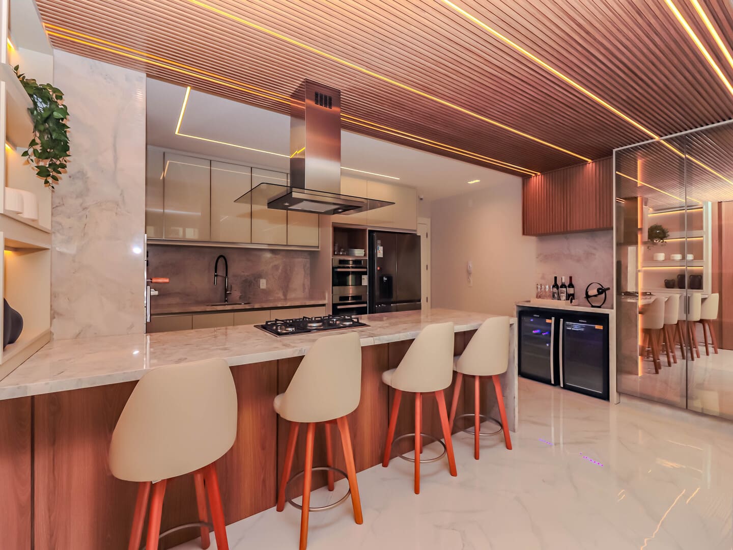 No Edifício Horizon Residence, encontra-se um apartamento mobiliado de 142 m² de área privativa, que revela a maturidade de um projeto arquitetônico atento às necessidades reais do morador. São duas suítes bem distribuídas, dois dormitórios, três vagas de garagem e uma planta inteligente que privilegia amplitude, iluminação natural e circulação fluida. Os acabamentos são de alto padrão, há infraestrutura para automação, churrasqueira americana e forro de gesso em todos os ambientes — detalhes que, combinados, imprimem sofisticação sem excessos.
