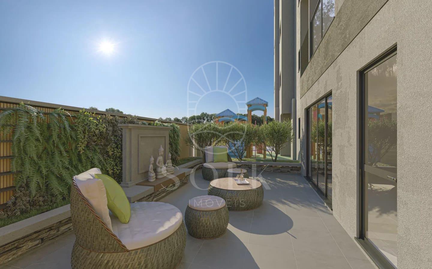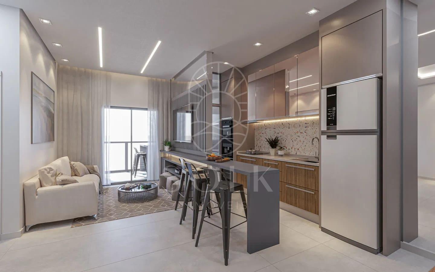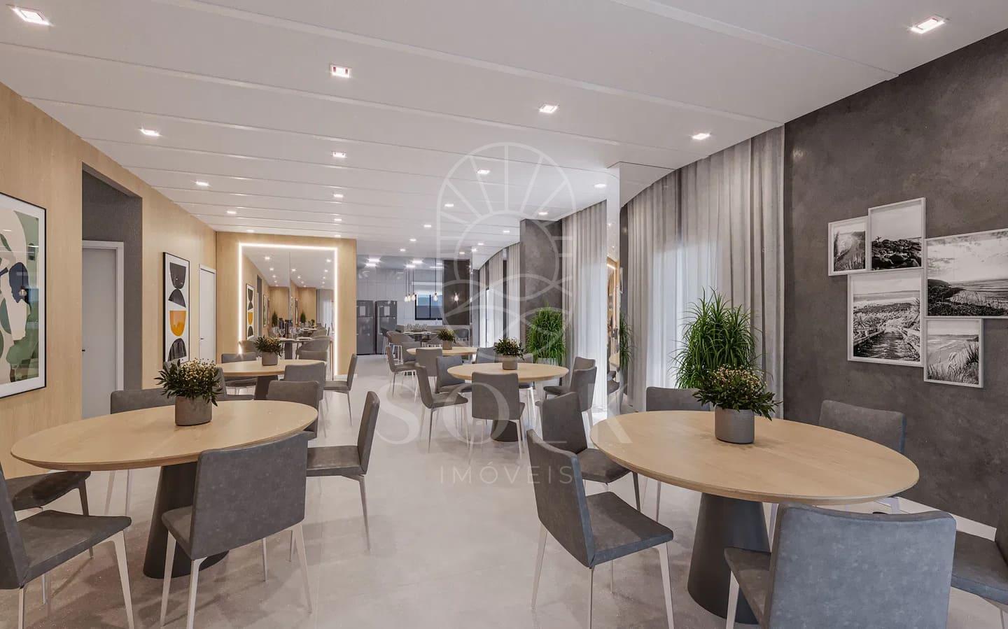 O apartamento Tipo 3, com 54,63 m² de área privativa, oferece planta inteligente com living integrado à cozinha e sala de jantar, criando uma atmosfera fluida e bem iluminada por luz natural. A sacada com churrasqueira a carvão é um diferencial que amplia o uso social do imóvel sem comprometer sua funcionalidade. A unidade conta com dormitório confortável, banheiro completo, área de serviço e uma vaga de garagem.