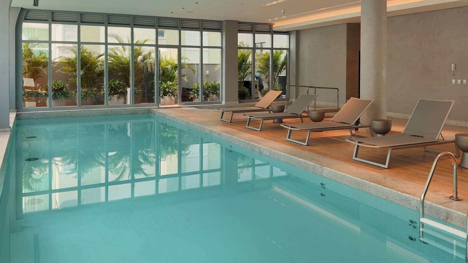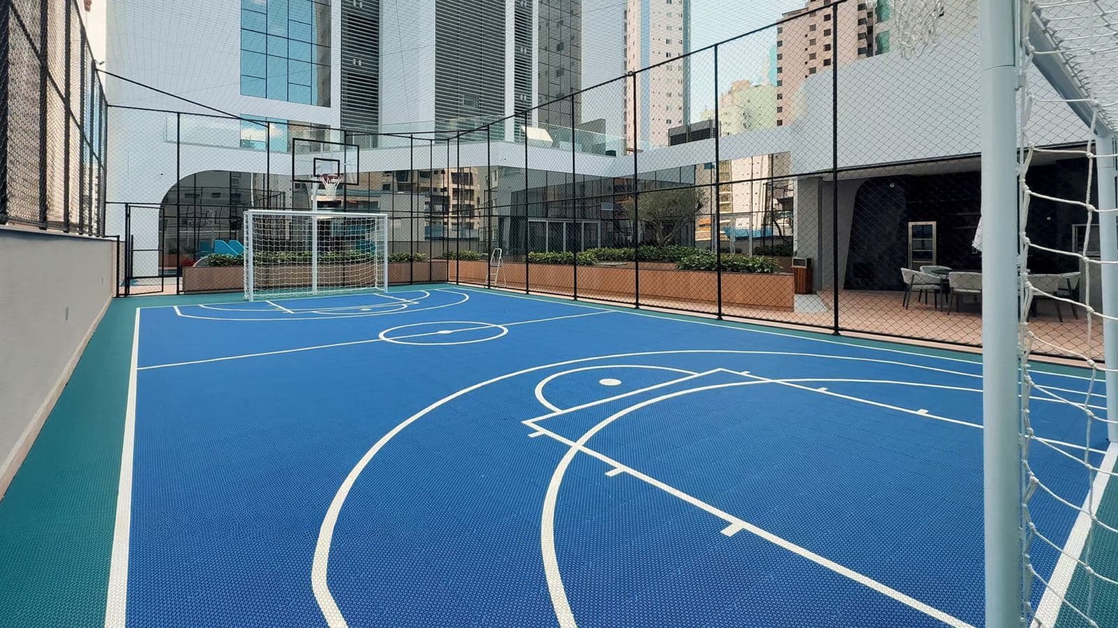 A área de lazer complementa a experiência com equilíbrio: piscinas, sauna, academia, quadra poliesportiva e espaços de apoio que atendem ao dia a dia sem excessos cenográficos. Tudo pensado para uso real, contínuo e bem mantido.