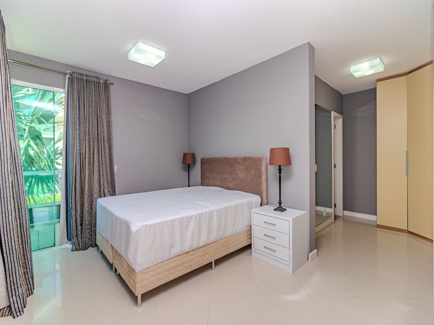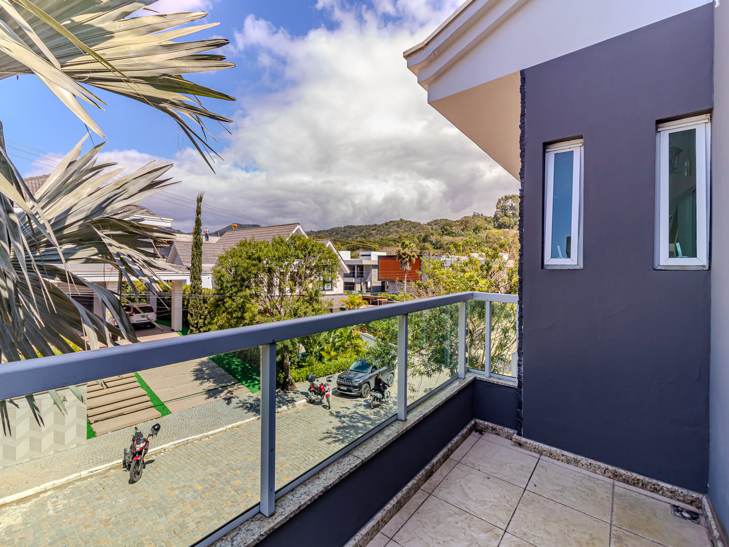 Na área íntima, quatro suítes proporcionam privacidade e conforto, com destaque para a master, que conta com closet espaçoso e sala de banho revestida em mármore, banheira de hidromassagem e box duplo. Um home office complementa o pavimento superior, oferecendo praticidade para a rotina contemporânea.