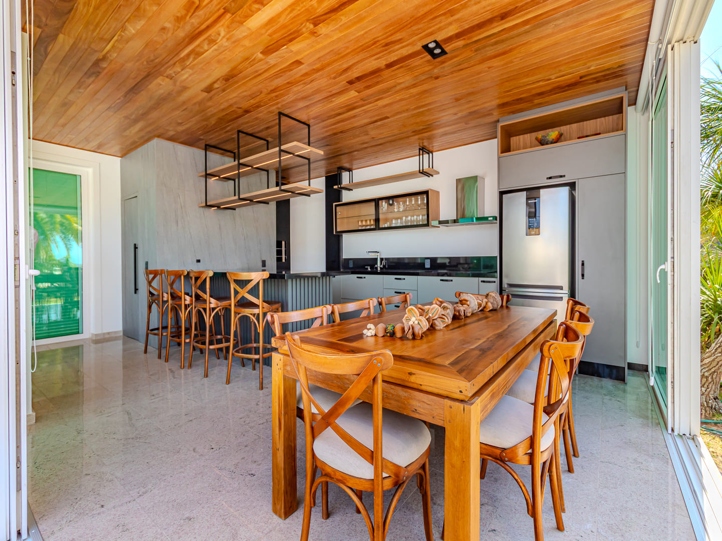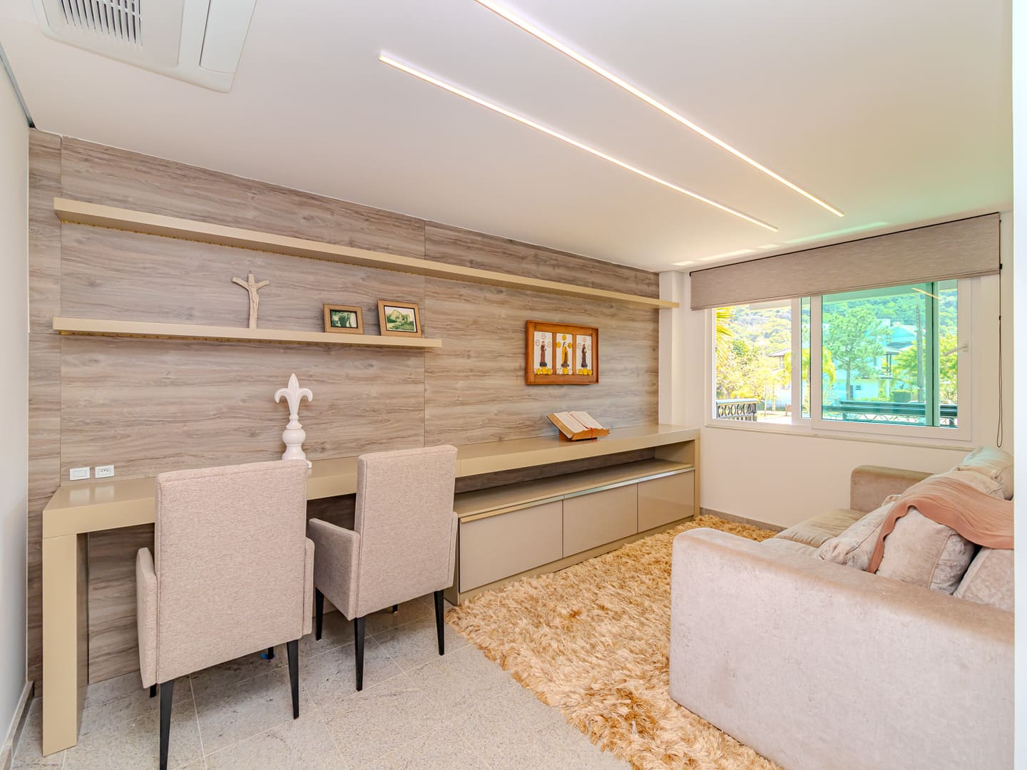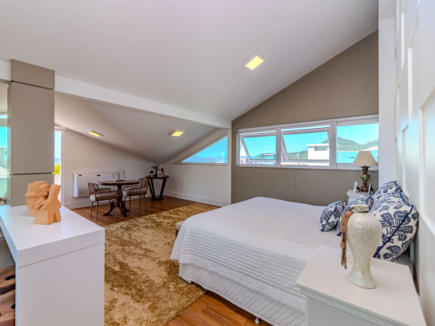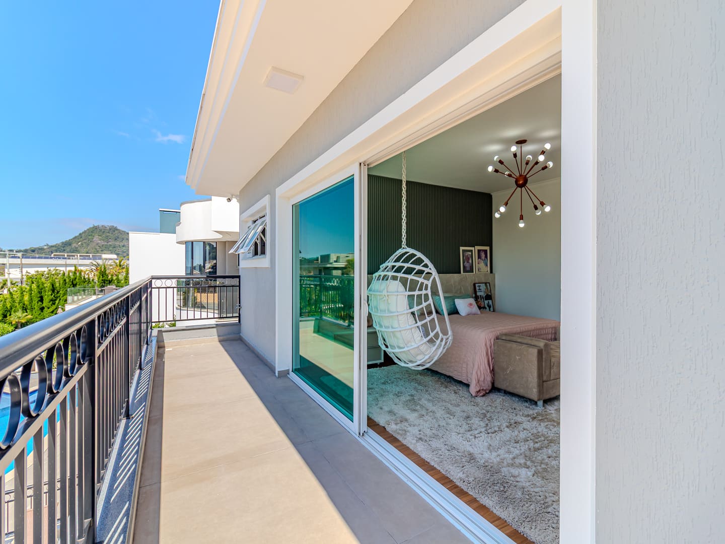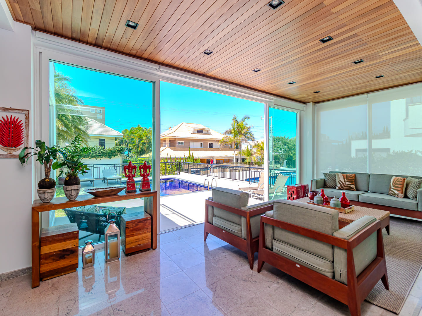 Com 610 m² de área construída distribuídos em três pavimentos, esta residência no Condomínio Vivendas do Atlântico entrega uma proposta sólida de conforto, eficiência e localização estratégica. Com projeto inteligente e já totalmente mobiliada e equipada, a casa reúne cinco suítes, incluindo uma suíte master com vista para o mar — elemento que reforça a conexão visual com o entorno natural da Praia do Estaleiro.