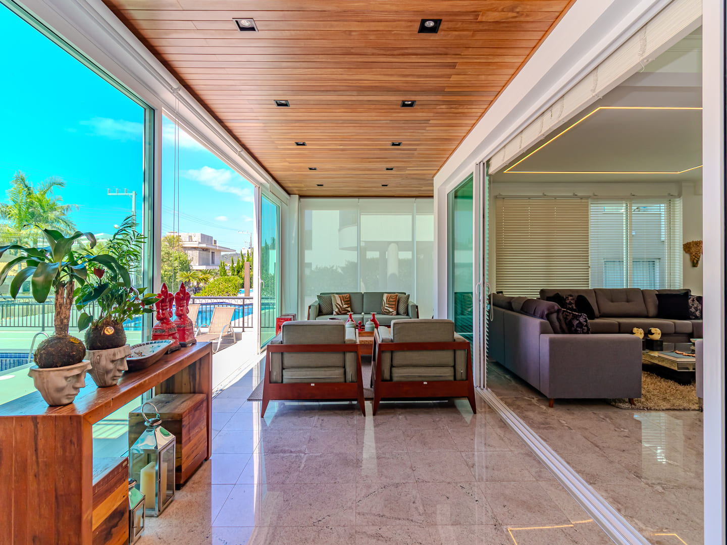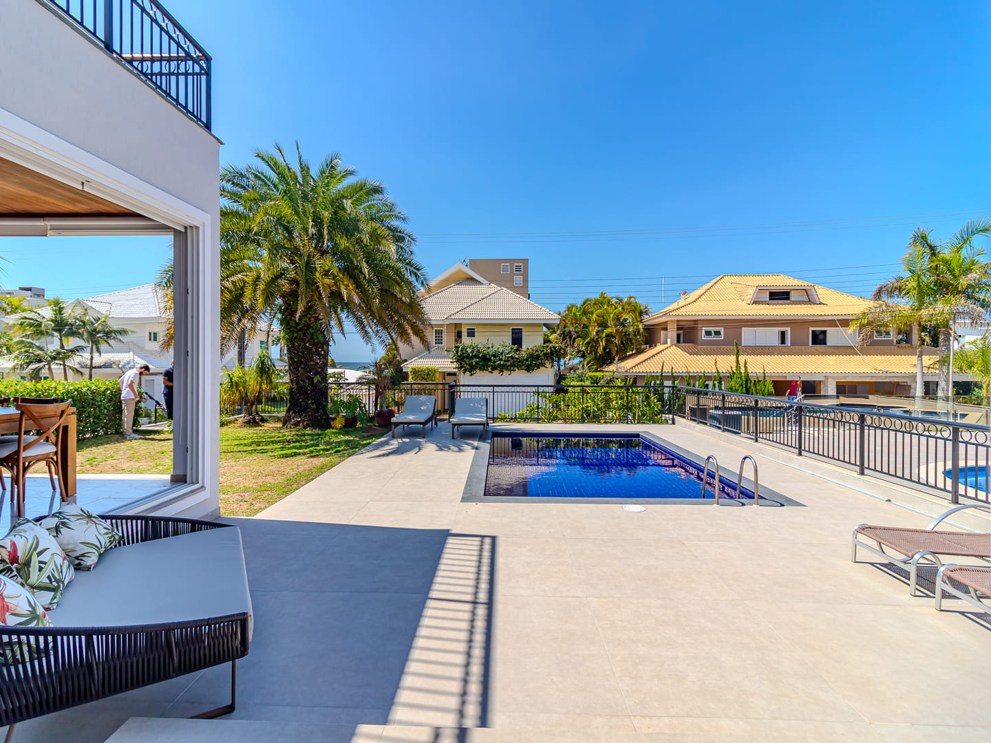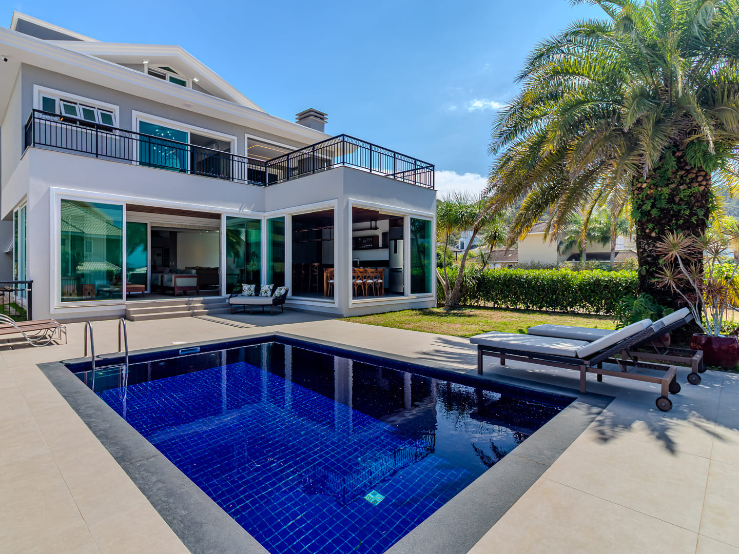 O paisagismo favorece o uso da piscina com discrição e privacidade, compondo um ambiente de lazer confortável e de fácil manutenção. O imóvel apresenta uma solução construtiva que atende diferentes perfis de morador, ideal tanto para residência principal quanto para segunda moradia com infraestrutura completa.