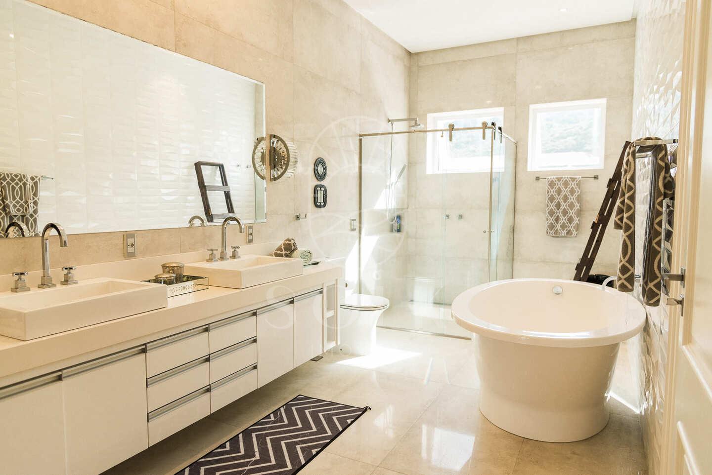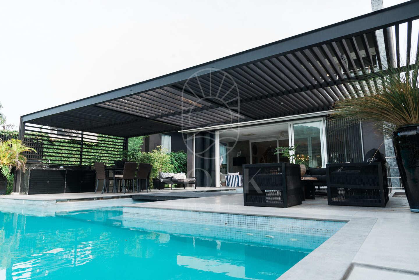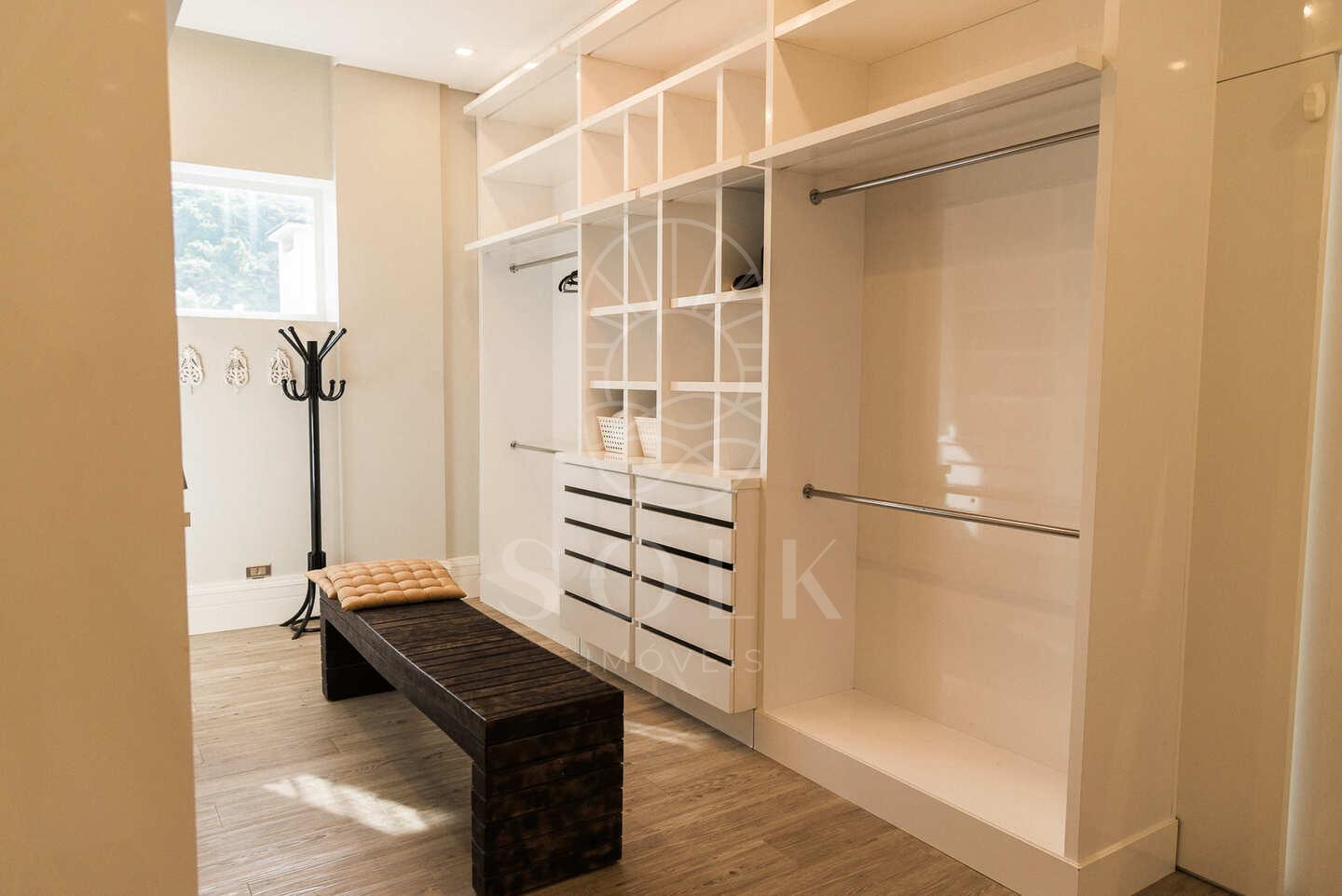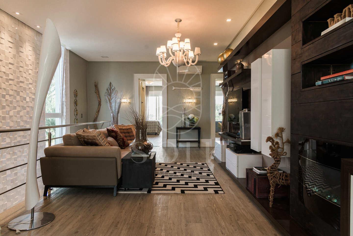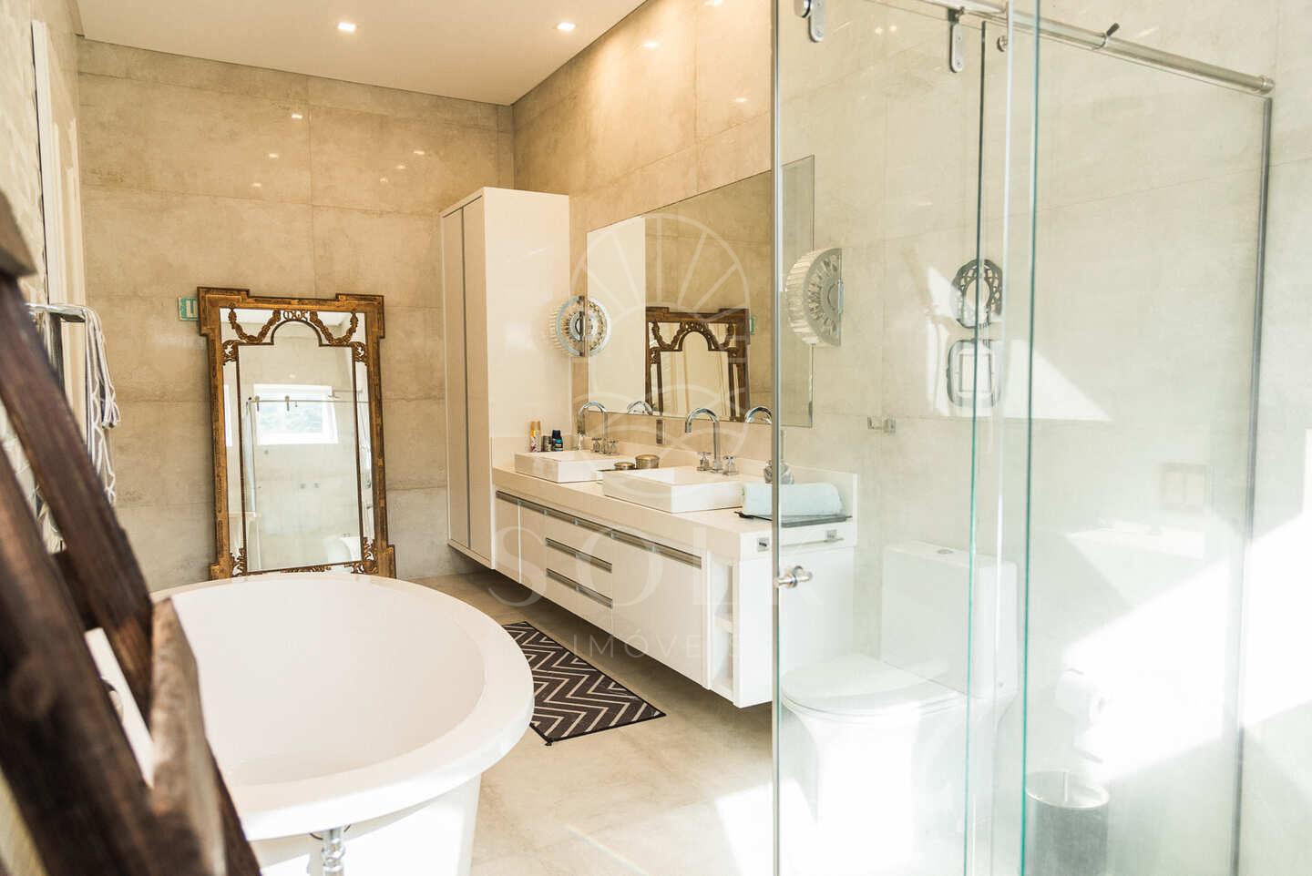Destaque para o elevador privativo e para o sistema de energia solar, reforçando a eficiência e acessibilidade do imóvel. A piscina com prainha e deck retrátil compõe o cenário externo, pensado para relaxamento com funcionalidade. A lareira — tanto elétrica quanto a gás — proporciona conforto térmico nos dias mais amenos. Lavanderia e garagem com capacidade para até cinco veículos completam a estrutura.