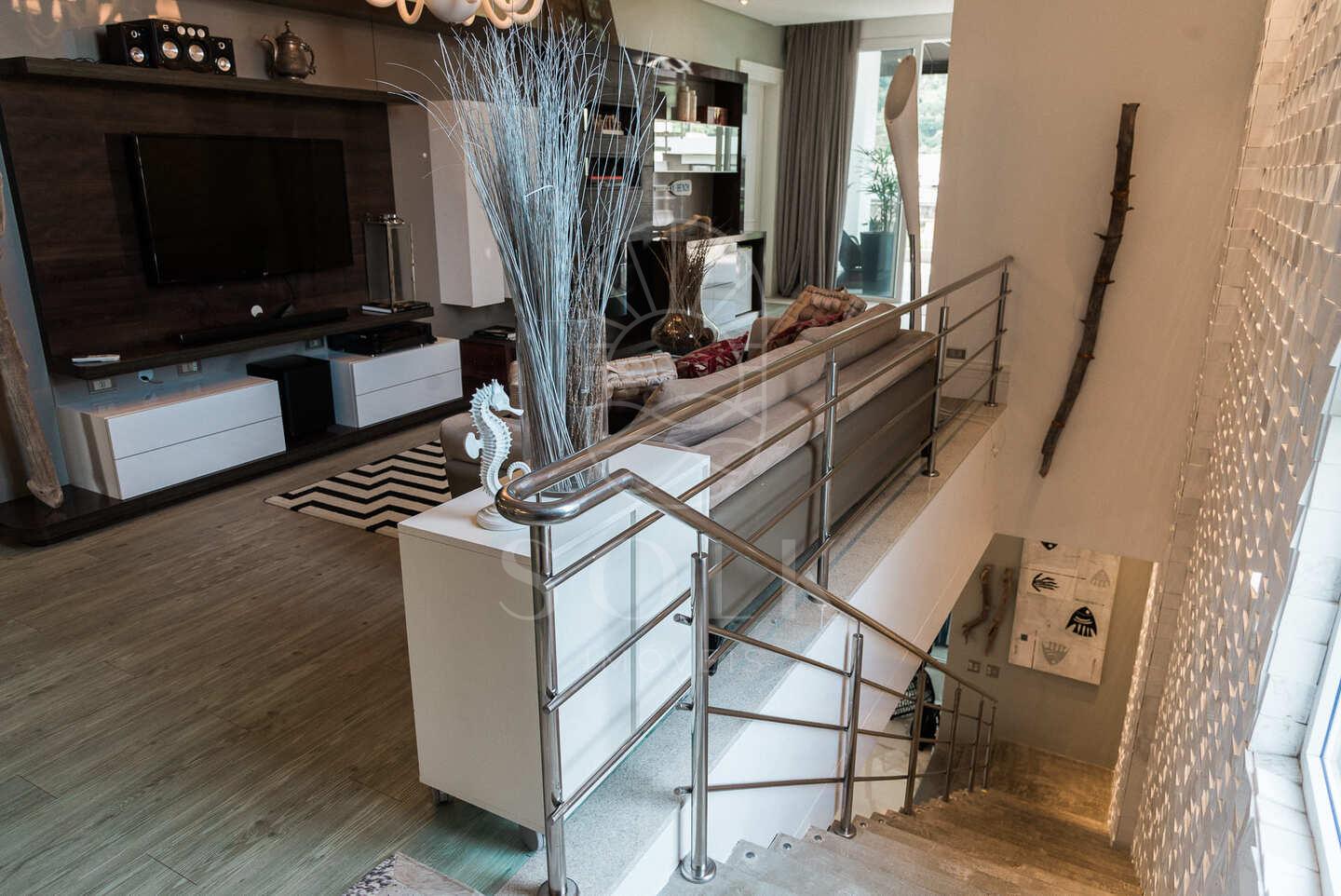 Com 1.200 m² de área construída distribuídos em três pavimentos, esta residência no Condomínio Vivendas do Atlântico combina proporções generosas, funcionalidade elevada e acabamentos que priorizam conforto e durabilidade. A planta foi desenhada para atender com precisão rotinas exigentes e momentos de lazer com a mesma fluidez, valorizando cada espaço com soluções inteligentes e uma arquitetura que se adapta ao entorno natural da Praia do Estaleiro.
