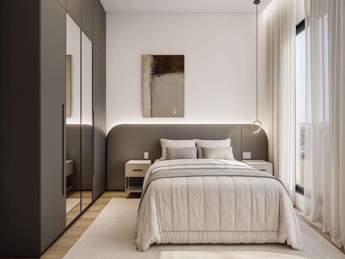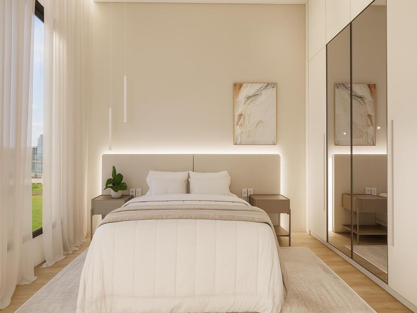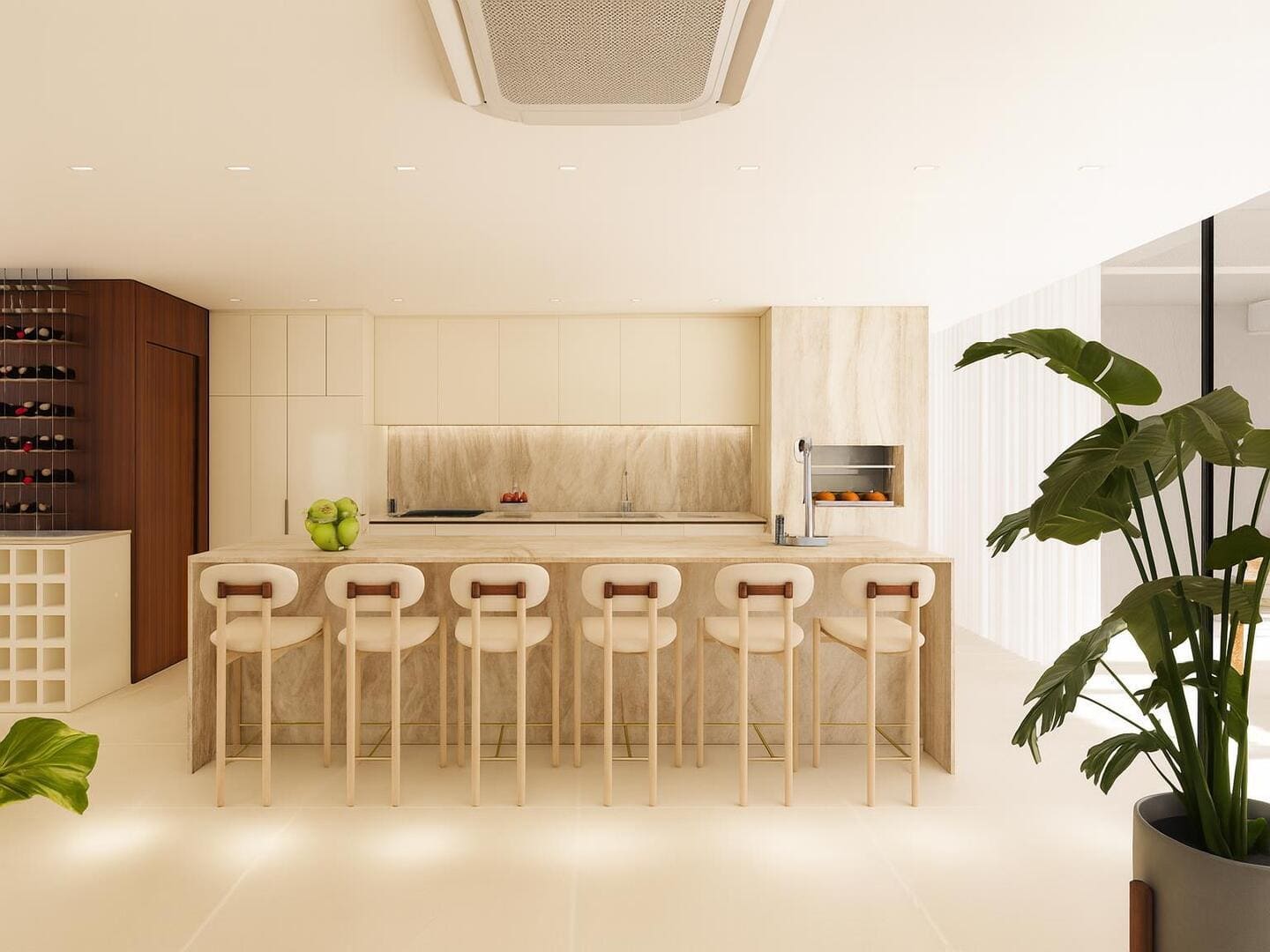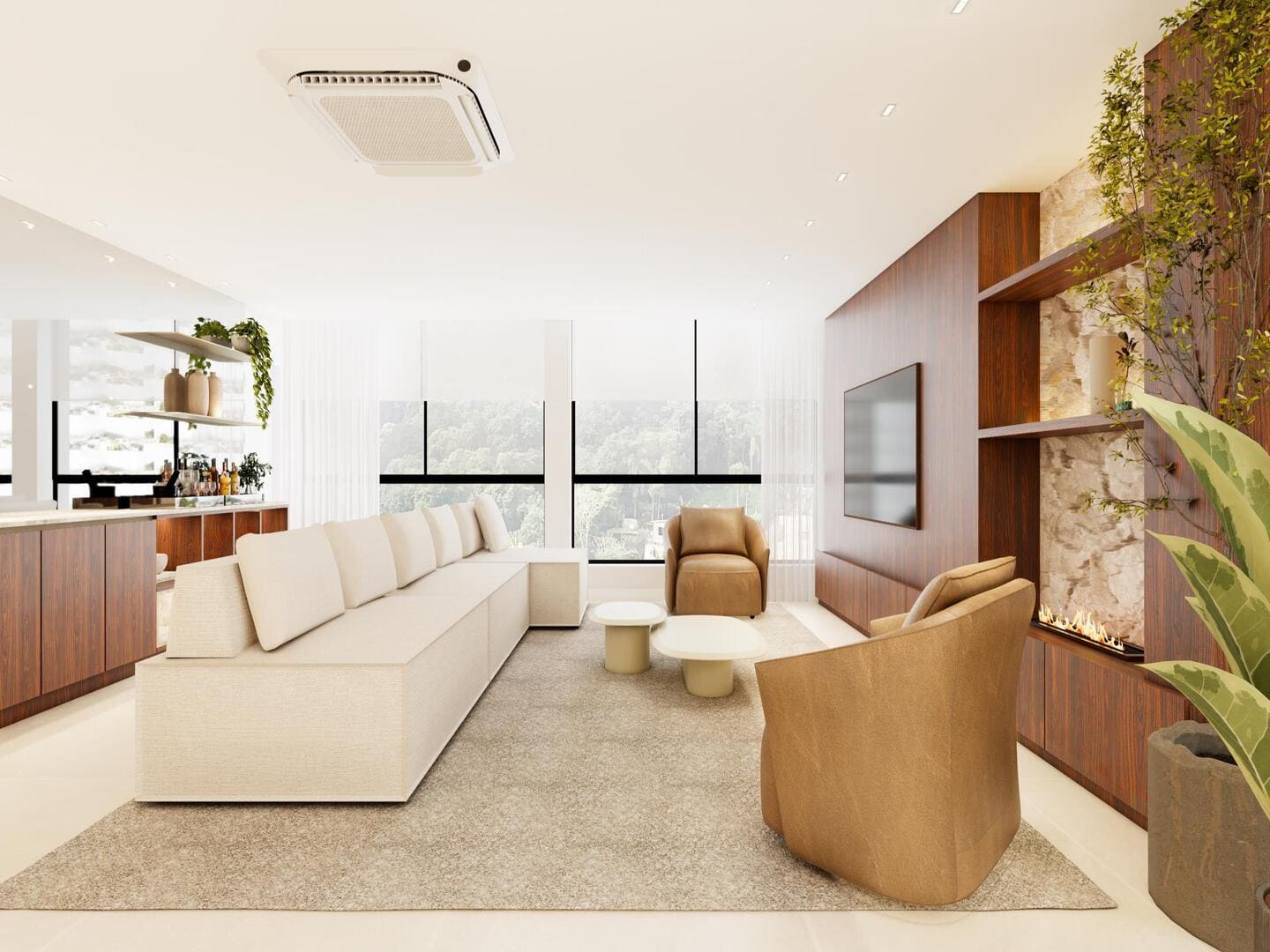 A residência foi concebida para proporcionar conforto em escala generosa. São quatro suítes, incluindo uma master com closet e banheira, além de ambientes integrados que favorecem o convívio sem abrir mão da individualidade. O living, em conceito aberto, conecta-se à área gourmet e à piscina aquecida com borda voltada ao horizonte — um convite permanente à contemplação. O projeto de interiores, executado conforme as imagens, traduz uma linguagem limpa, com materiais naturais, iluminação estratégica e mobiliário que equilibra sofisticação e funcionalidade.