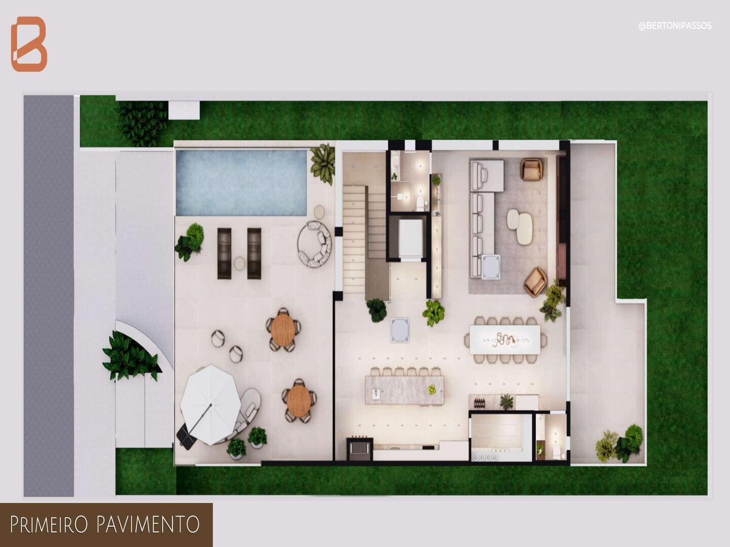 Os três pavimentos da casa são interligados por elevador, otimizando o deslocamento interno e reforçando o conforto no cotidiano. As três vagas de garagem cobertas foram pensadas para atender com praticidade o estilo de vida urbano. Cada detalhe reflete a harmonia entre arquitetura e paisagem, evidenciando a vocação da casa para oferecer bem-estar com discrição e eficiência.